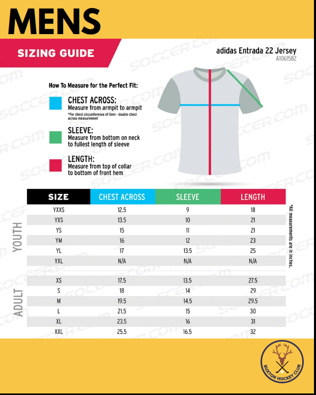 Buxton HC’s Male playing shirts are supplied by Adidas, your club number is added to the back of the shirt –